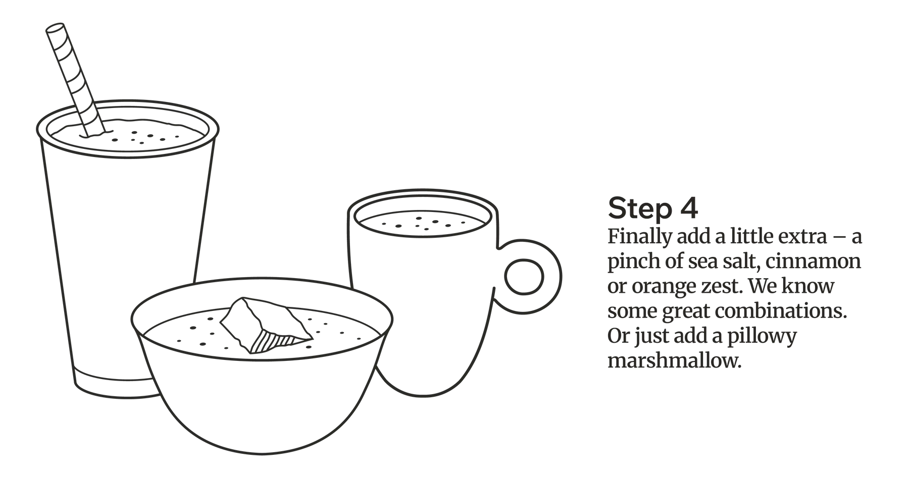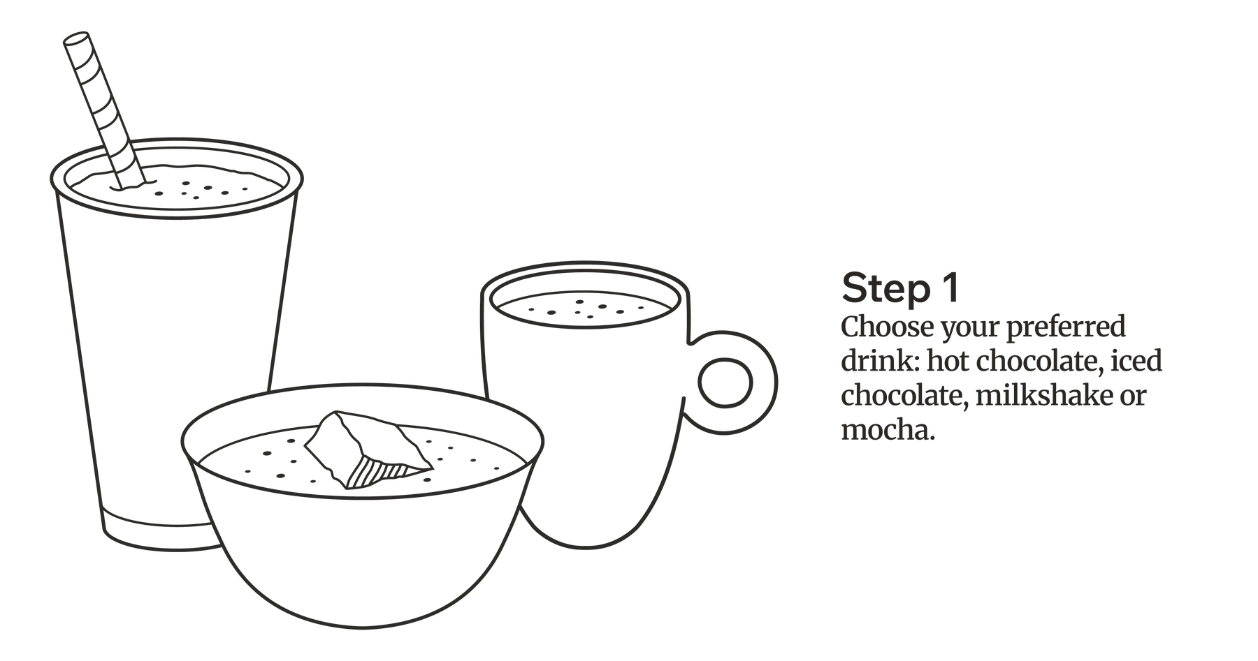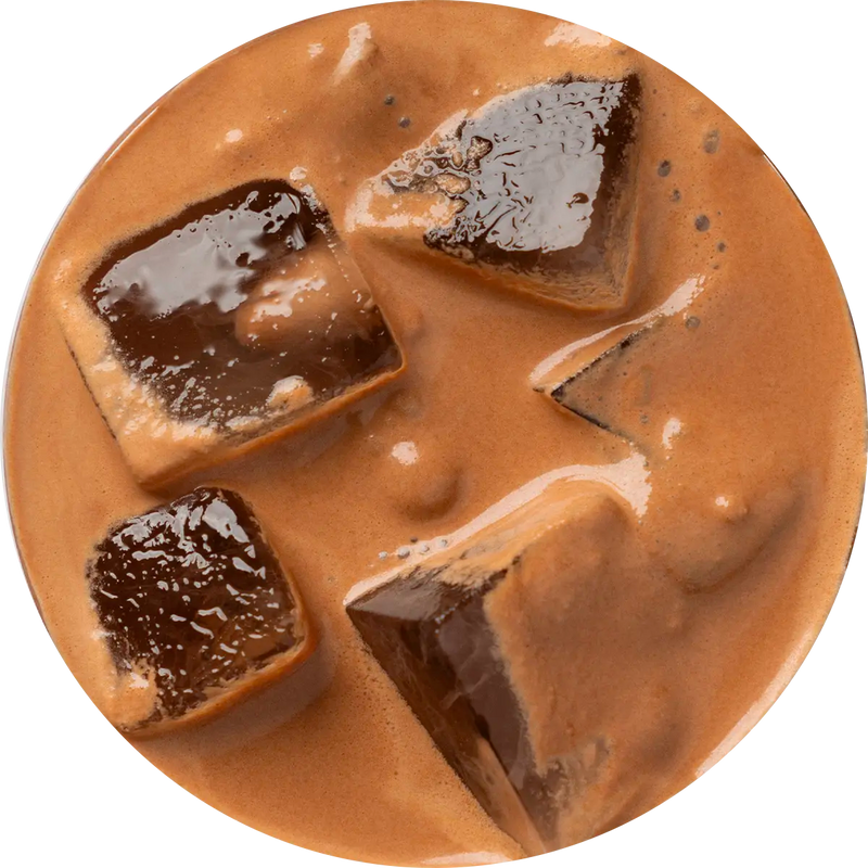 Your choice of chocolate %, combined with dairy or plant-based milk and poured over ice