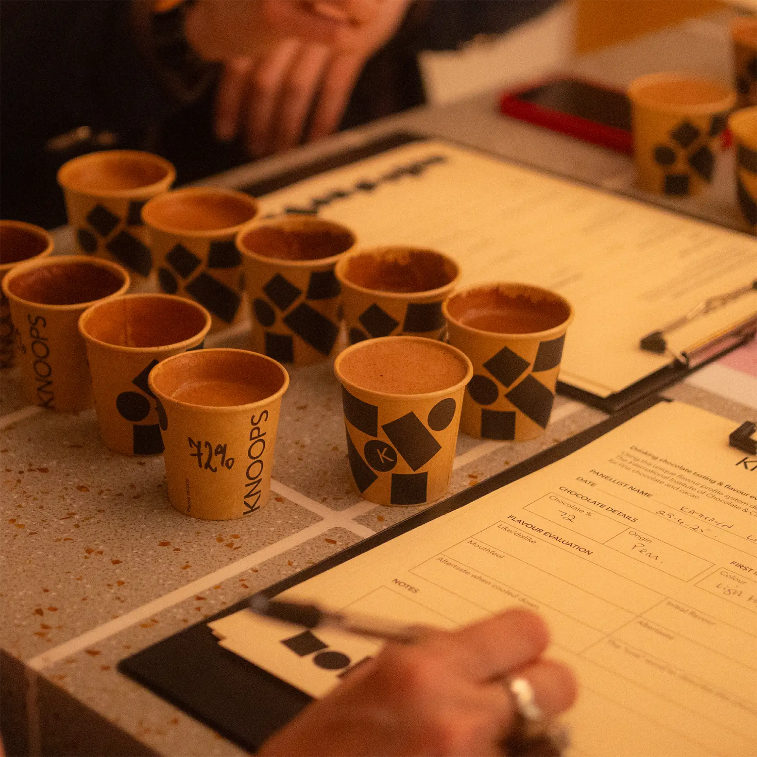 Alongside his understanding of the journey from tree to chocolate, Jens has developed unique expertise assessing which chocolates translate best into hot chocolate. His authority is vital in curating the Knoops menu board of single origin, bean-to-bar chocolates. Jens has honed his tasting process with a view to ensuring each customer finds something to love. Experienced at judging flavour development and balance, if Jens loves it even after rounds of rigorous taste scrutiny, the chocolate earns its place on the Knoops menu. Jens’ aim is always to ensure a diverse chocolate library featuring chocolates across the widest range of origins, %s and flavour profiles.